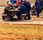 Inmates pass time inside the Lancaster State Prison exercise yard. More than 4,000 inmates are housed at Lancaster, Los Angeles County's largest penitentiary.