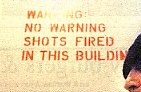 Third-striker Randy Johnson, 40, stands below a warning sign indicating that guards will shoot directly at prisoners if a fight breaks out. He is serving a third-strike sentence for heroin possession.